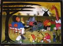 Eine ideale Malerei zur Illustration eines Bilderbuches, wie in der 2011 erschienenen Geschichte "Wie die Tiere ihre Farben bekamen", deren Text von Agnes Mpata stammt.