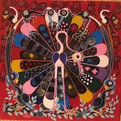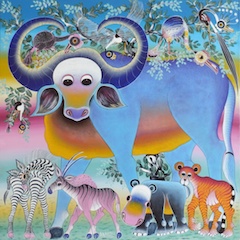 Yaphidu bringt neue Ideen und Motive in die Malkunst und experimentiert auch mit sanfteren Farbtönen. Er verwendet besonders feine Pinsel, denn er malt gerne viele kleine Details, besonders gerne Vogelköpfe.