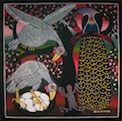 Z. Chimwanda est resté fidèle à son style classique Tingatinga. Ses motifs favoris sont les oiseaux, les nids remplis d'oeufs et les antilopes, parfois une combinaison de ces thèmes.
